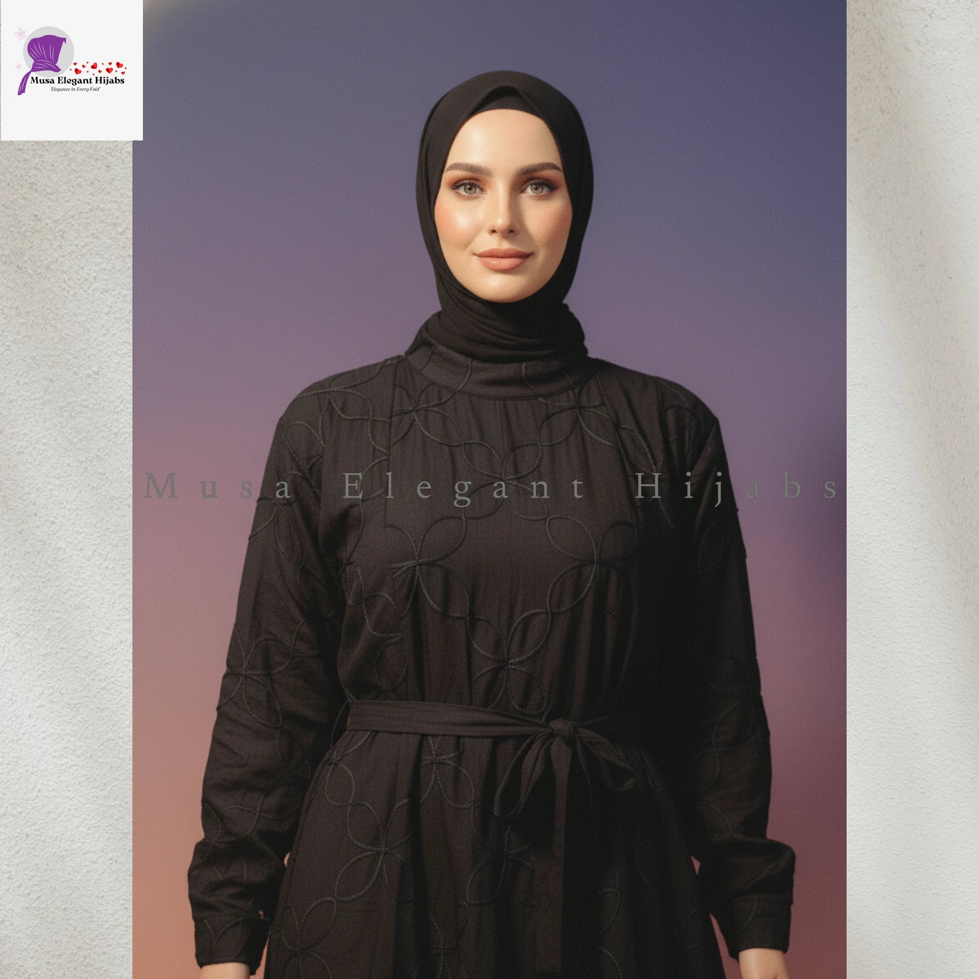Premium imported long gowns with textured embossed design and waist belt.